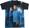 This Star Trek t-shirt shows Leonard Nimoy as the respected and distinguished Vulcan/human hybrid Mr. Spock giving his famous Vulcan hand salute.