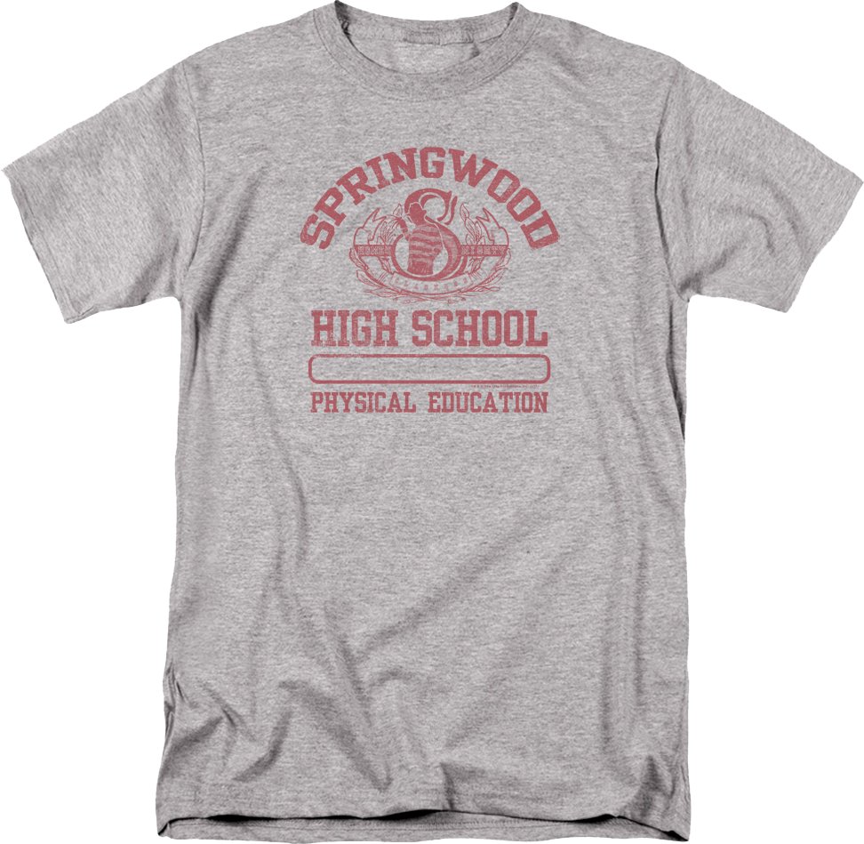 Many of Freddy Krueger's victims were students at Springwood High School, including Tina Gray, Glen Lantz and Rod Lane. Even Coach Schneider wasn't safe. Everyone will think you are one of the lucky ones that got away when you wear this Springwood High School Nightmare On Elm Street T-Shirt!