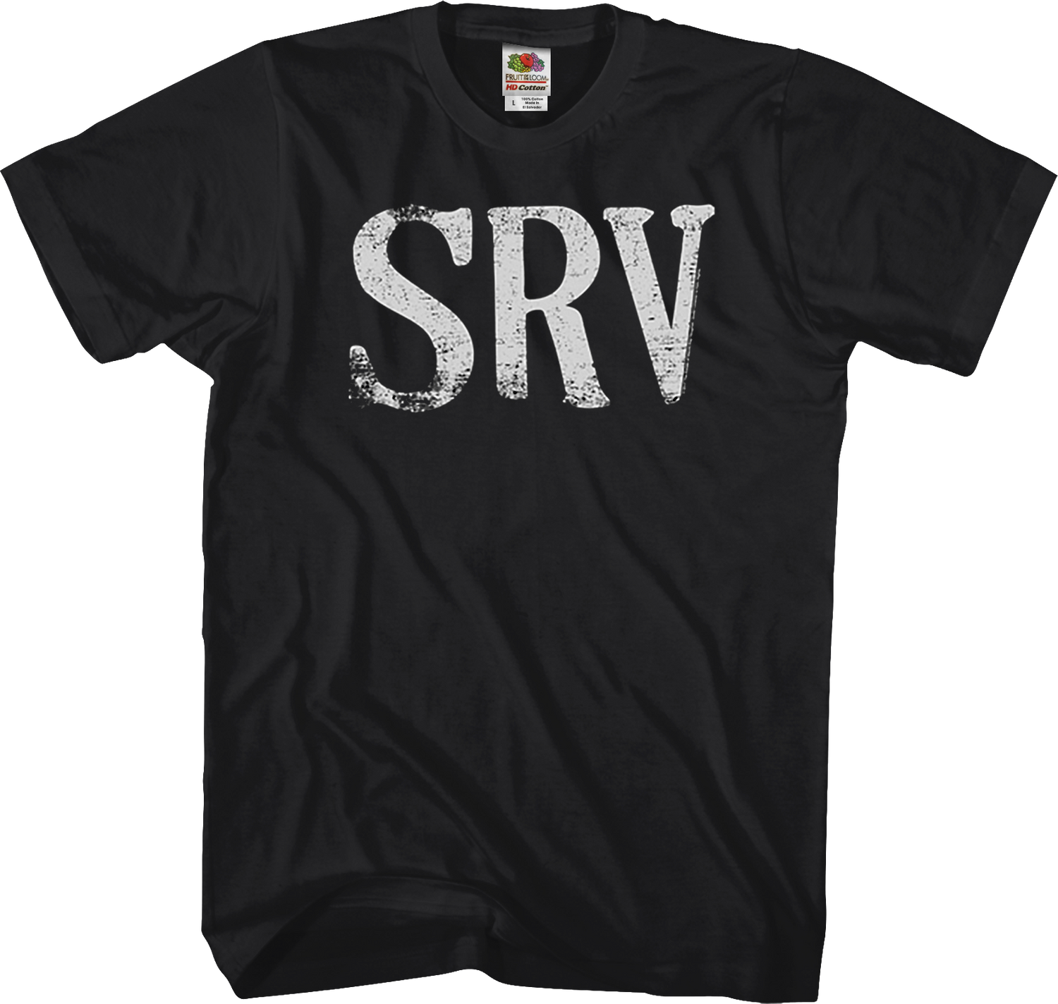 This Stevie Ray Vaughn shirt features the initial logo for the late songwriter-musician. Famous for his blues-rock sound, Vaughn produced many hits during his short lifetime, including "Love Struck Baby", "Tightrope", and "The Sky Is Crying".
