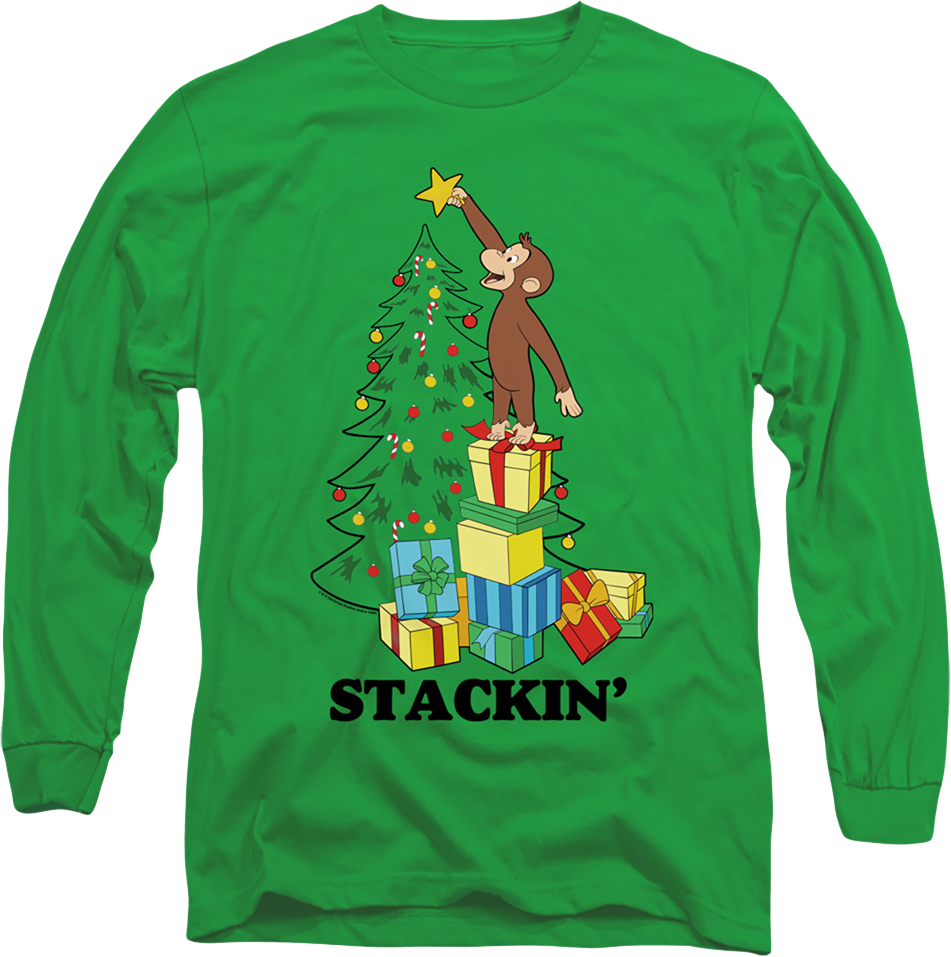 Curious George has captivated the minds and hearts of children for decades, and has even starred in his own television Christmas special. Show everyone your love for H.A. Rey and Margret Rey's classic character with this Stackin' Curious George Christmas Long Sleeve Shirt!