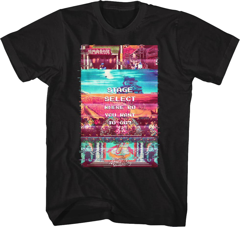 Street Fighter was one of the most successful arcade games of 1987, and it spawned one of the most popular video game franchises of all time. Everyone will know you are a fan when you wear this Stage Select Street Fighter T-Shirt!