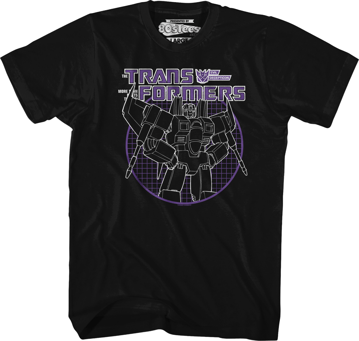 Everyone will know you are a fan of the cunning and ambitious Decepticon when you wear this 80sTees.com exclusive Starscream Circle Grid Transformers T-Shirt!