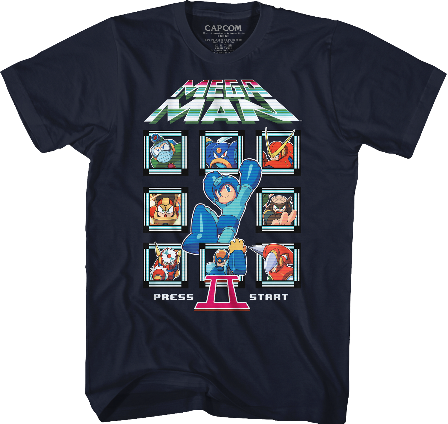 For any fan of the classic Capcom video game, this Start Screen Mega Man II T-Shirt is a must have!