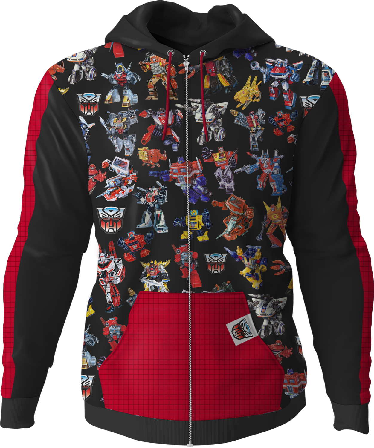 The Autobots are the Cybertronian robots in disguise that keep the universe safe from the evil Decepticons. This 80sTees.com exclusive Transformers zip up hoodie shows the most popular Autobots.