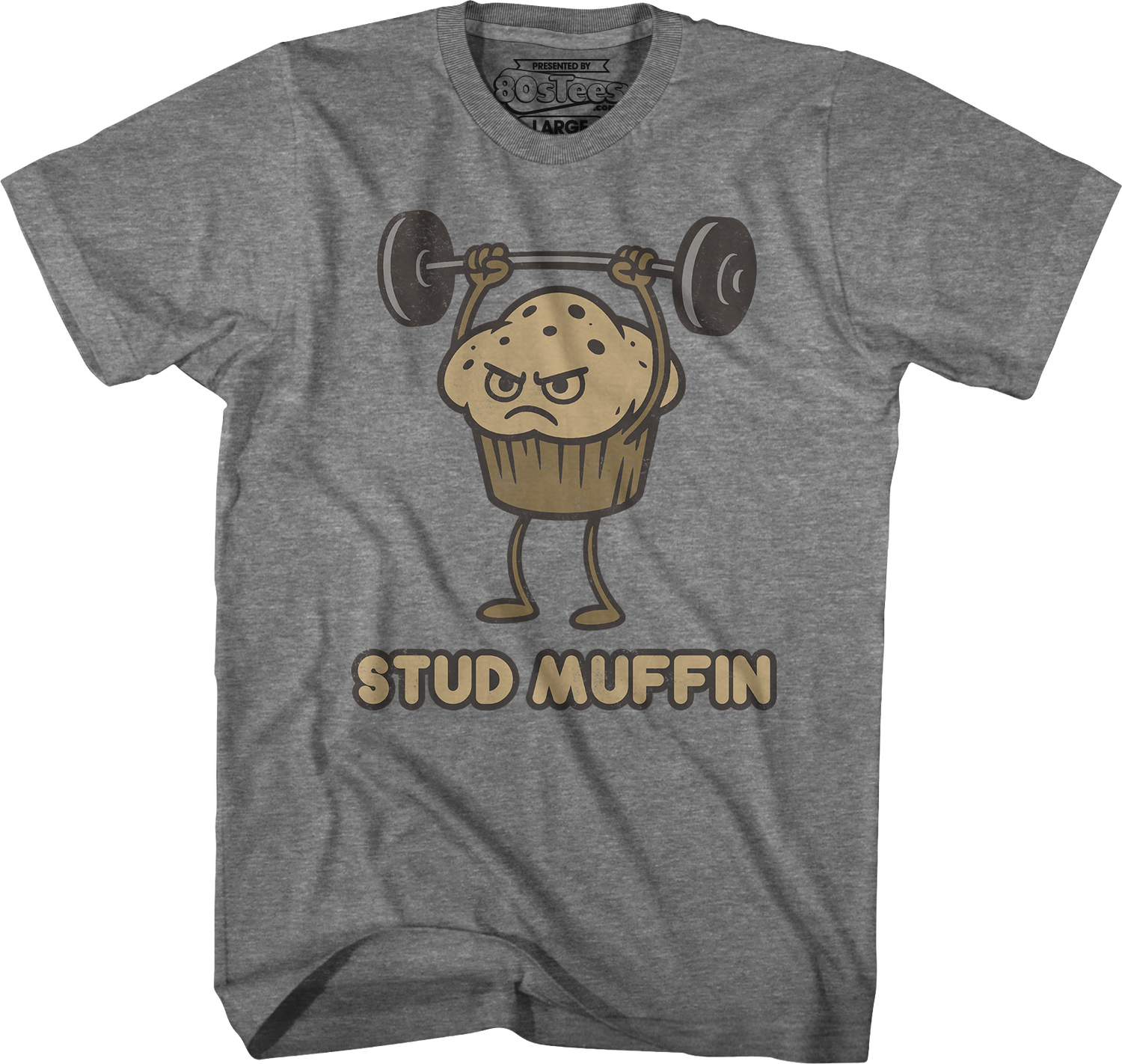 Everyone will know you are a fan of the food that helps supply energy for endurance and strength when you wear this 80sTees.com exclusive Stud Muffin T-Shirt!