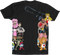 The front of this sublimated shirt shows Pac-Man, She-Ra, Darth Vader, Optimus Prime, Red Fraggle, Lion-O, Slimer, He-Man, Voltron, Cobra Commander, Jem, Sloth, Mario, Smurfs, Gizmo, Mr. Miyagi, Ray Stantz, Michelangelo, Rainbrow Brite and the Man in Black. The back of the shirt shows Ferris Bueller, Clubber Lang, Care Bears and a gremlin. If any of your friends can name all of the characters on this sublimated shirt, they are, like truly a fan of the 80s.