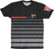 As the Cybertronian truck, Optimus Prime is leaving a red stripe behind on this striped shirt. The striped continue on the back of this soft and comfortable sublimated shirt. The right features the unmistakable Autobots logo.