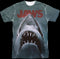 In 1975, movie audiences realized what true fear was when a three ton shark terrorized Amity Island. Now, you can bring that same fear back with this Jaws poster shirt. The front of the shirt shows the great white shark that went on a feeding frenzy. The back of the shirt shows poor Chrissie Watkins skinny dipping in the dangerous water. Chrissie was the shark's first victim, but you can keep the screams coming with this sublimation Jaws poster shirt.
