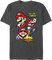 This Super Mario Bros. t-shirt features a collage of Mario posing with arms crossed, smiling, and jumping on a Goomba.