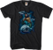 This Aquaman t-shirt shows the ruler of Atlantis swimming with great white sharks.