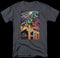 This Jurassic Park t-shirt features a Tyrannosaurus Rex that has survived and is terrorizing a city. With a giant dinosaur, fire, traffic, and a bold logo, this t-shirt is designed to look like a poster for an old fashion monster movie.