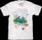 This Smurfs t-shirt shows Handy Smurf walking through a field of mushrooms. The shirt reads "Take a hike".