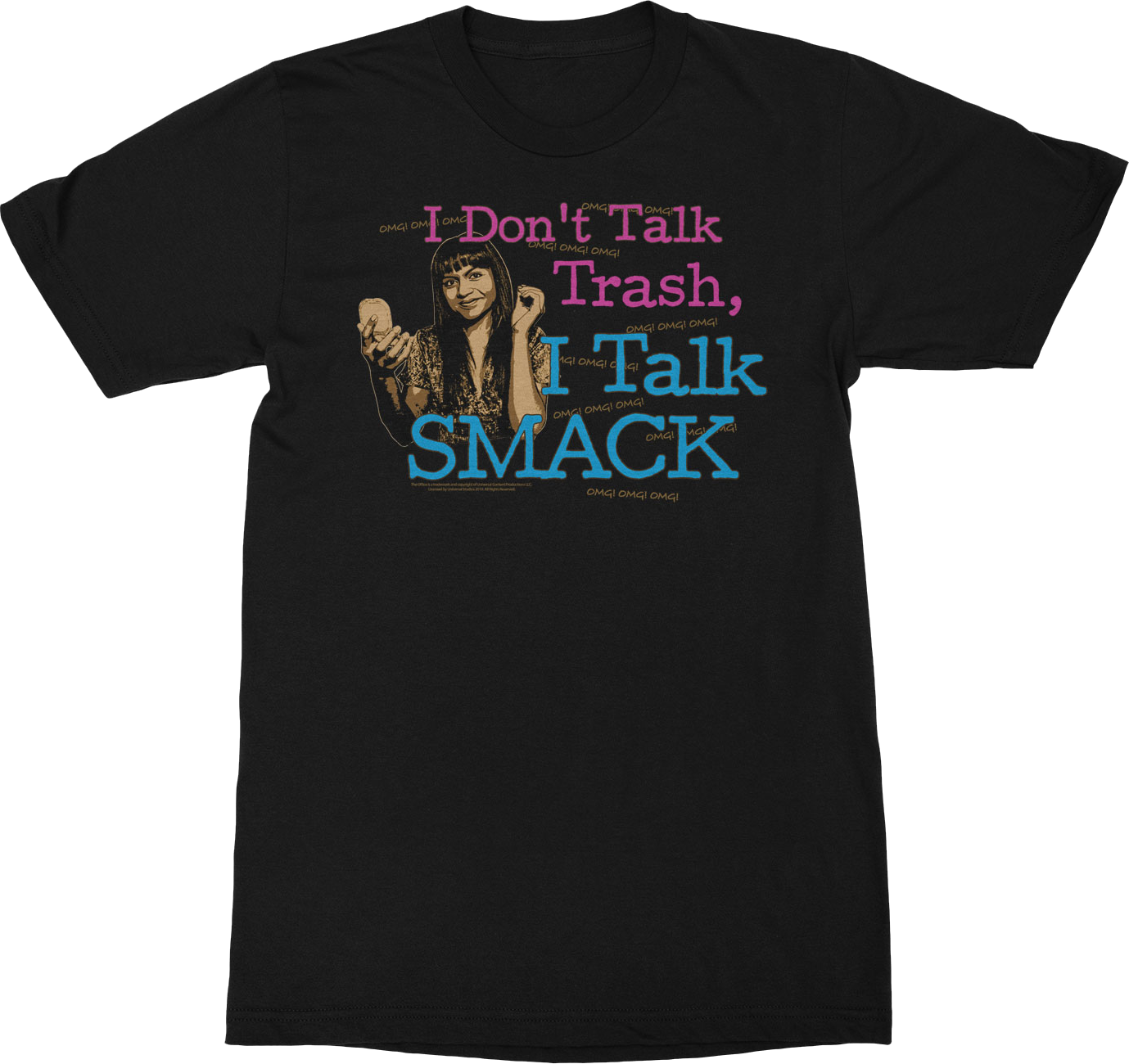 This Office t-shirt features an image of Dunder Mifflin's customer service representative Kelly Kapoor saying, "I Don't Talk Trash, I Talk Smack".