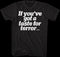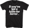This Carrie t-shirt features the 1976 classic's tagline. The front of the shirt reads If you've got a taste for terror... The back of the shirt includes a silhouette of Carrie White, and reads Take "CARRIE" to the prom.