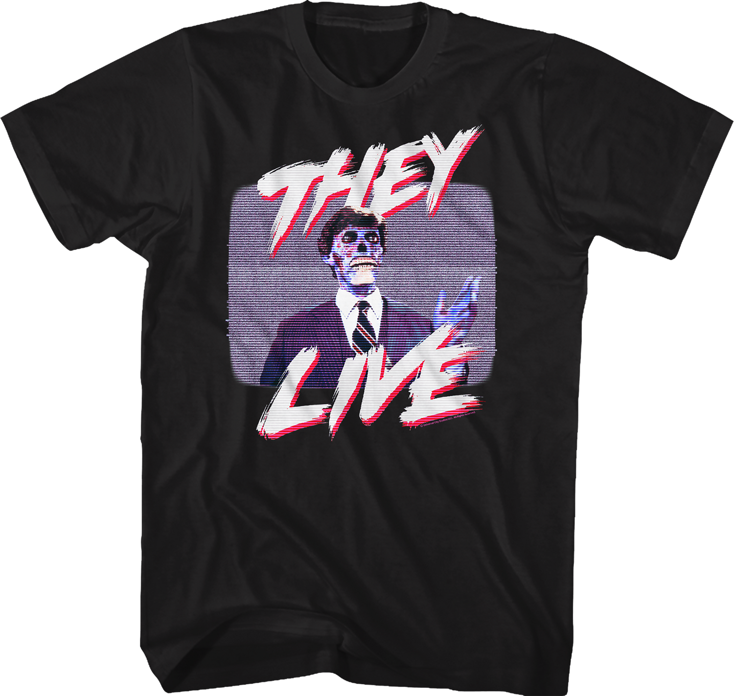 For any fan of John Carpenter's 1988 classic starring "Rowdy" Roddy Piper, this Television Static They Live T-Shirt is a must have!