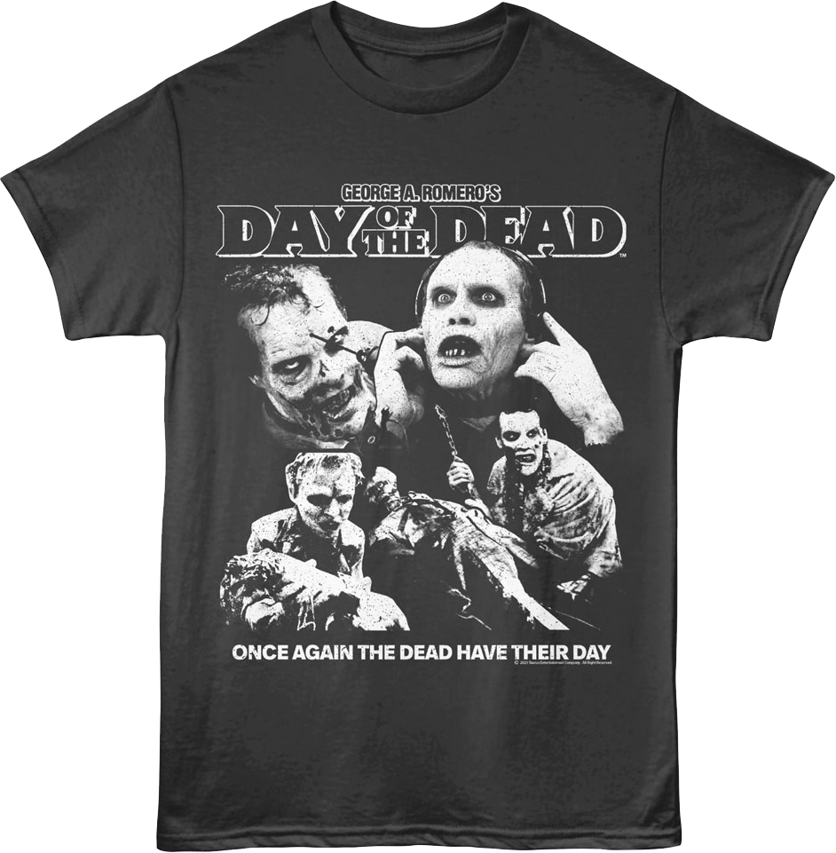 Everyone will know you are a fan of the third installment in George A. Romero's zombie series when you wear this The Dead Have Their Day Collage Day Of The Dead T-Shirt!