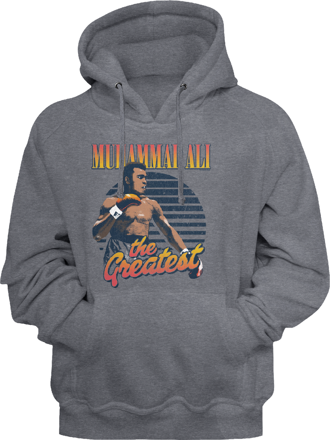This Muhammad Ali hoodie features an image of boxing icon ready to throw a knockout punch. The hoodie includes Ali's nickname, "the Greatest".