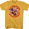 This Hulk Hogan t-shirt shows the wrestling legend posing in front of an American flag.