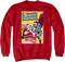 This Superman sweatshirt features the cover artwork for the 1947 comic titled "The Man Who Hated Christmas". The image shows Superman pushing Santa Claus down a chimney.
