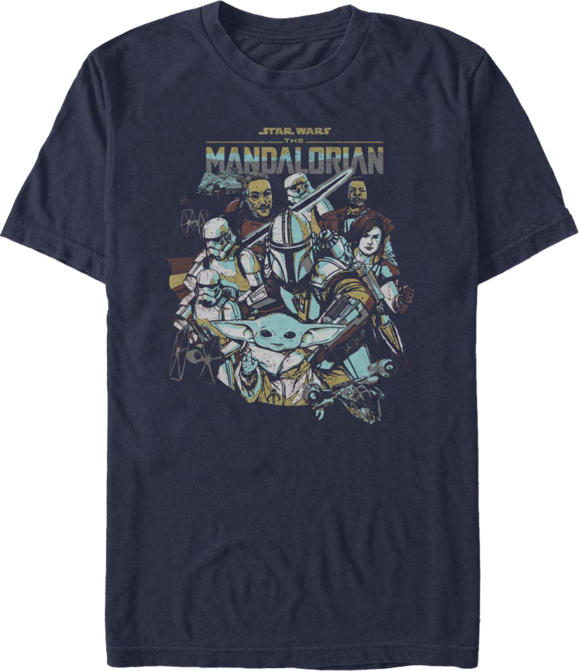 Let everyone know that you are a fan of the greatest series in the galaxy with this The Mandalorian Collage Star Wars T-Shirt!