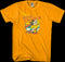 This The Mouse of Tomorrow Mighty Mouse T-Shirt shows the pint-sized hero saluting with clouds and a wedge of cheese in the background. He's pictured with his red and yellow costume and his nickname, "The Mouse of Tomorrow." The heroic rodent has superpowers including flight, super strength, and invulnerability that he uses to battle evil felines and other enemies.