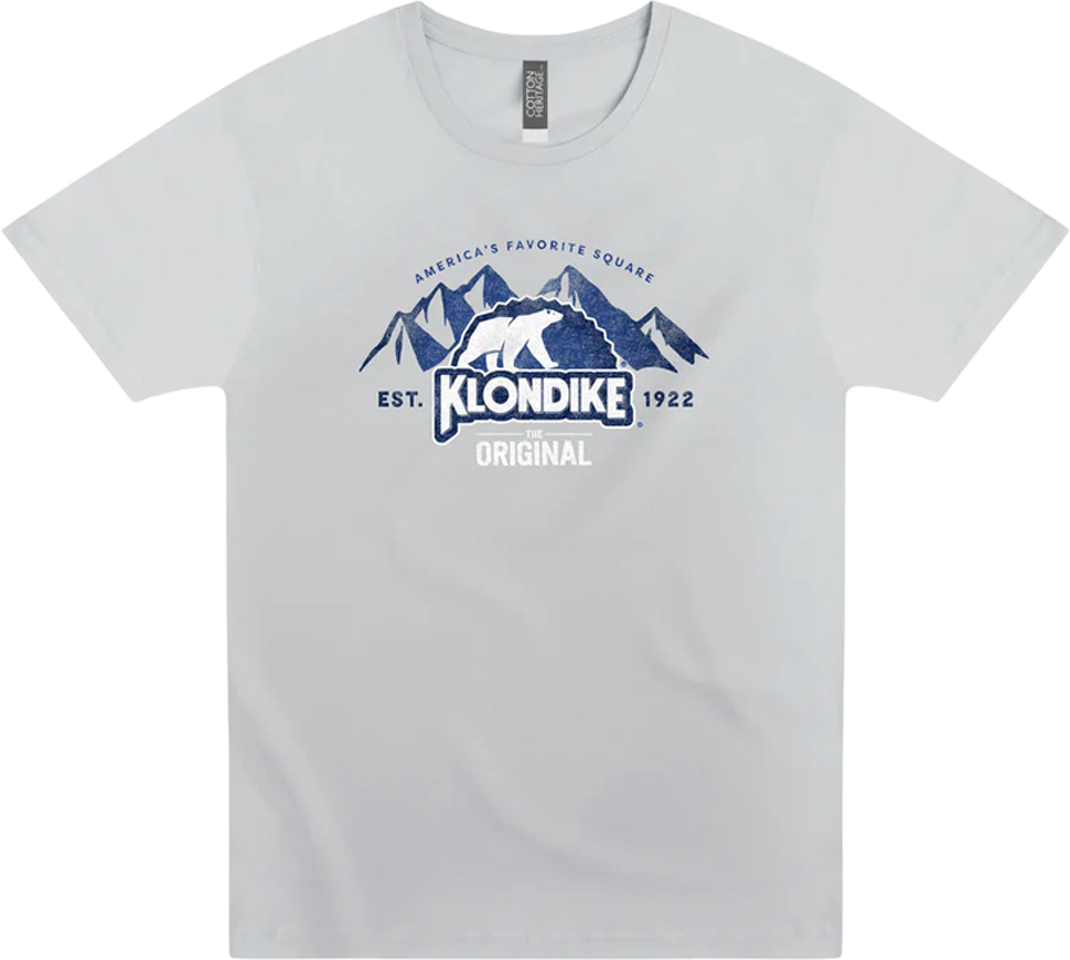 The Klondike Bar is a classic ice cream treat that was introduced in 1922. It is made of a square of vanilla ice cream coated in a thick, crispy shell of milk chocolate. Everyone will know you are a fan of "America's favorite square" when you wear this The Original Since 1922 Klondike T-Shirt!