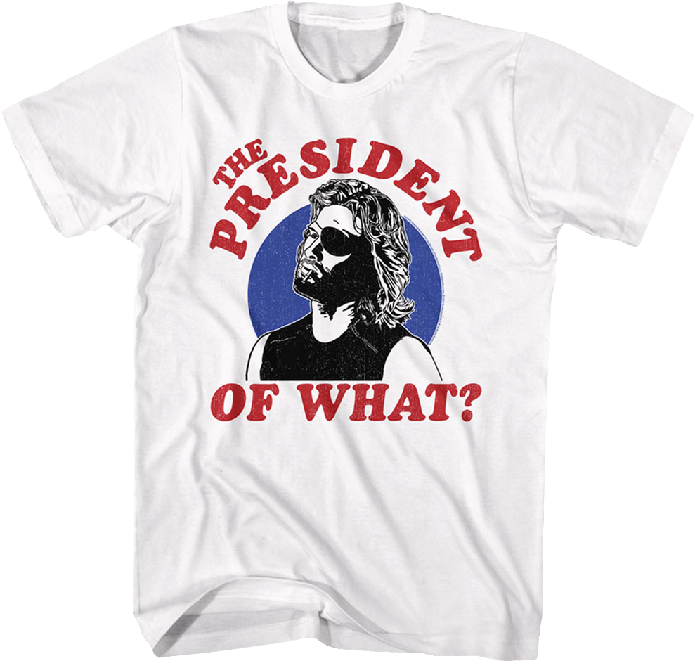 This Escape From New York t-shirt features an image of Snake Plissken and Snake's quote, "The President Of What?"