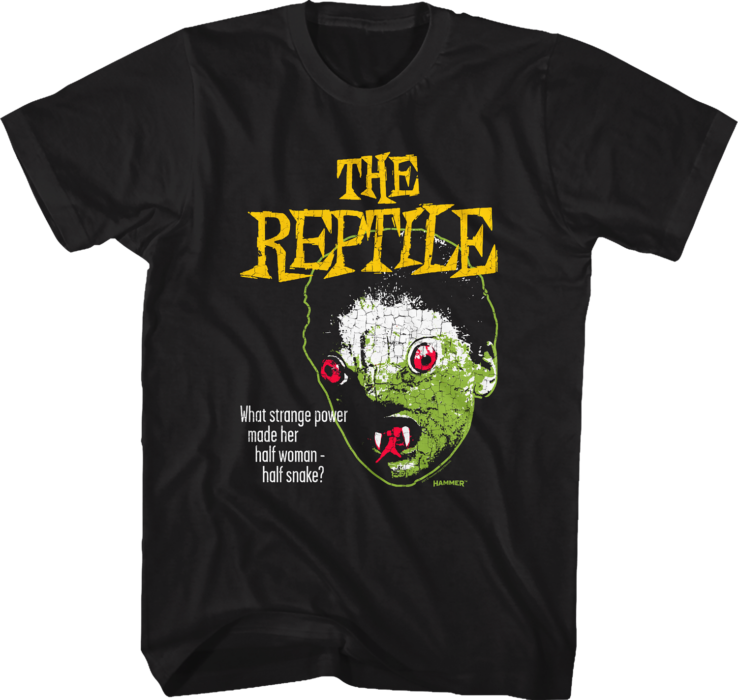 For any fan of the fun-filled Hammer classic starring Noel Willman, Jacqueline Pearce, Ray Barrett, Jennifer Daniel, and Michael Ripper, this The Reptile Hammer Films T-Shirt is a must have!