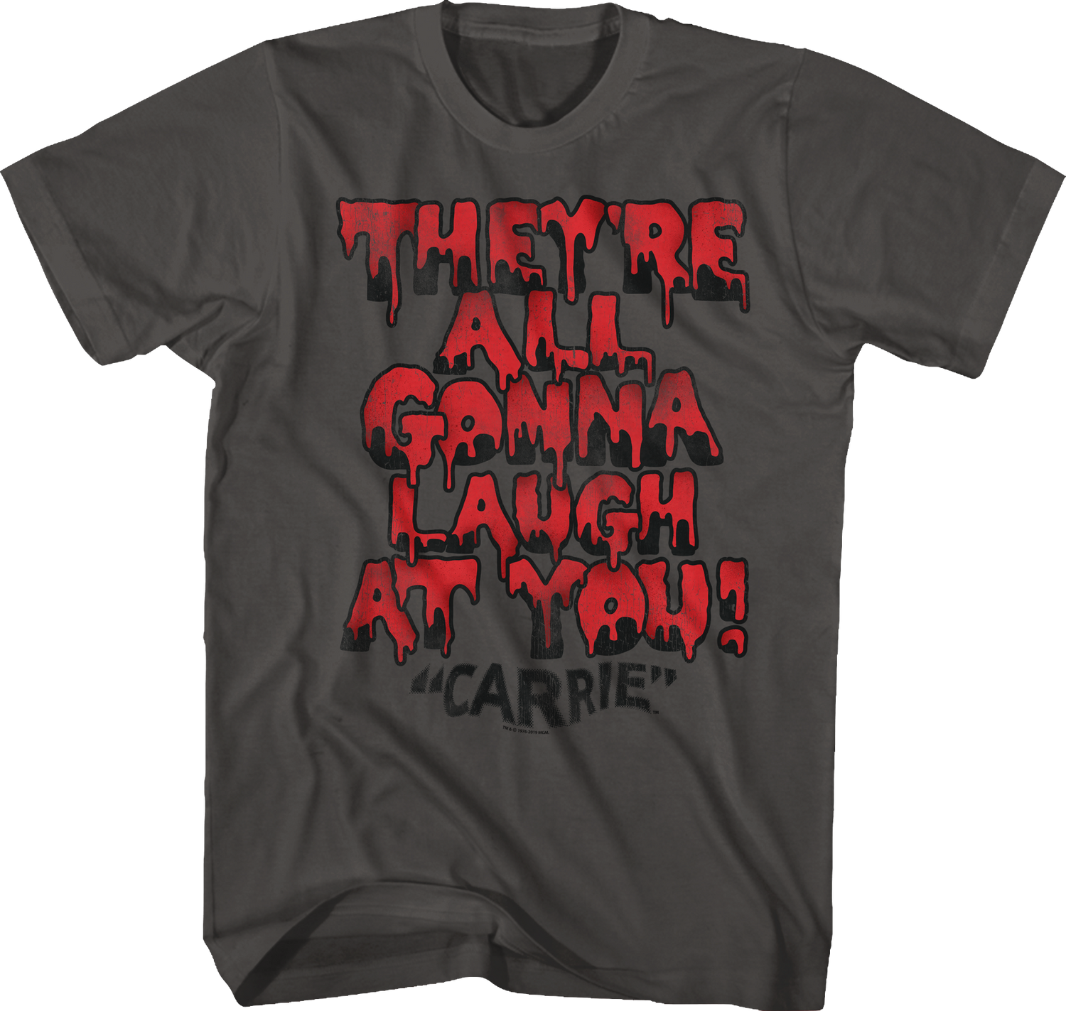 Everyone will immediately know that you are a fan of the horror classic when you wear this blood-soaked They're All Gonna Laugh At You Carrie T-Shirt!