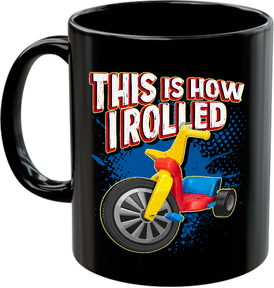 The Big Wheel tricycle was extremely popular in the 1970s and 1980s because of its incredible design and its low-riding center of gravity, which made it safer by reducing the risk of tipping over. Kids loved their Big Wheel because it felt like a race car, and the big front wheel allowed for fun skidding and fast turns. Let everyone know you are a fan of the tricycle that plays hard and plays safe with this 15 ounce This Is How I Rolled Coffee Mug!