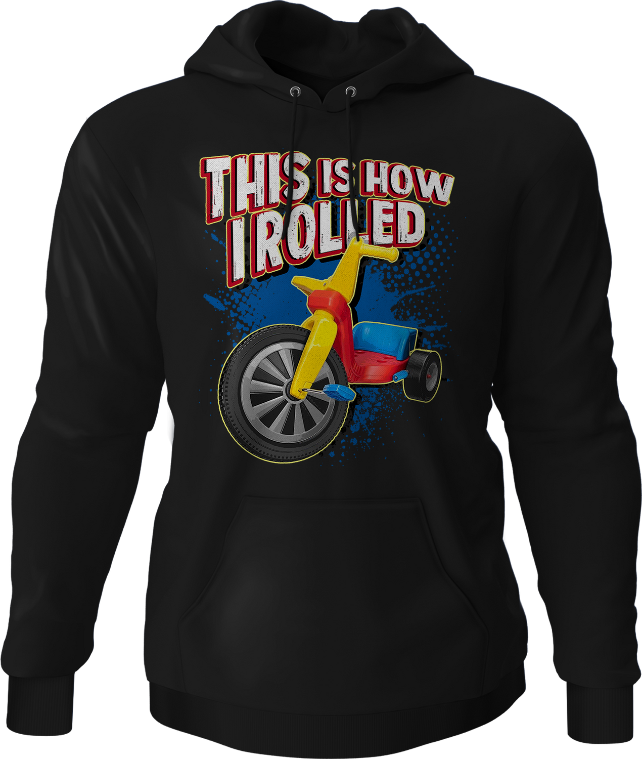 This 80sTees.com exclusive hoodie features a Big Wheel tricycle. The shirt reads This Is How I Rolled.
