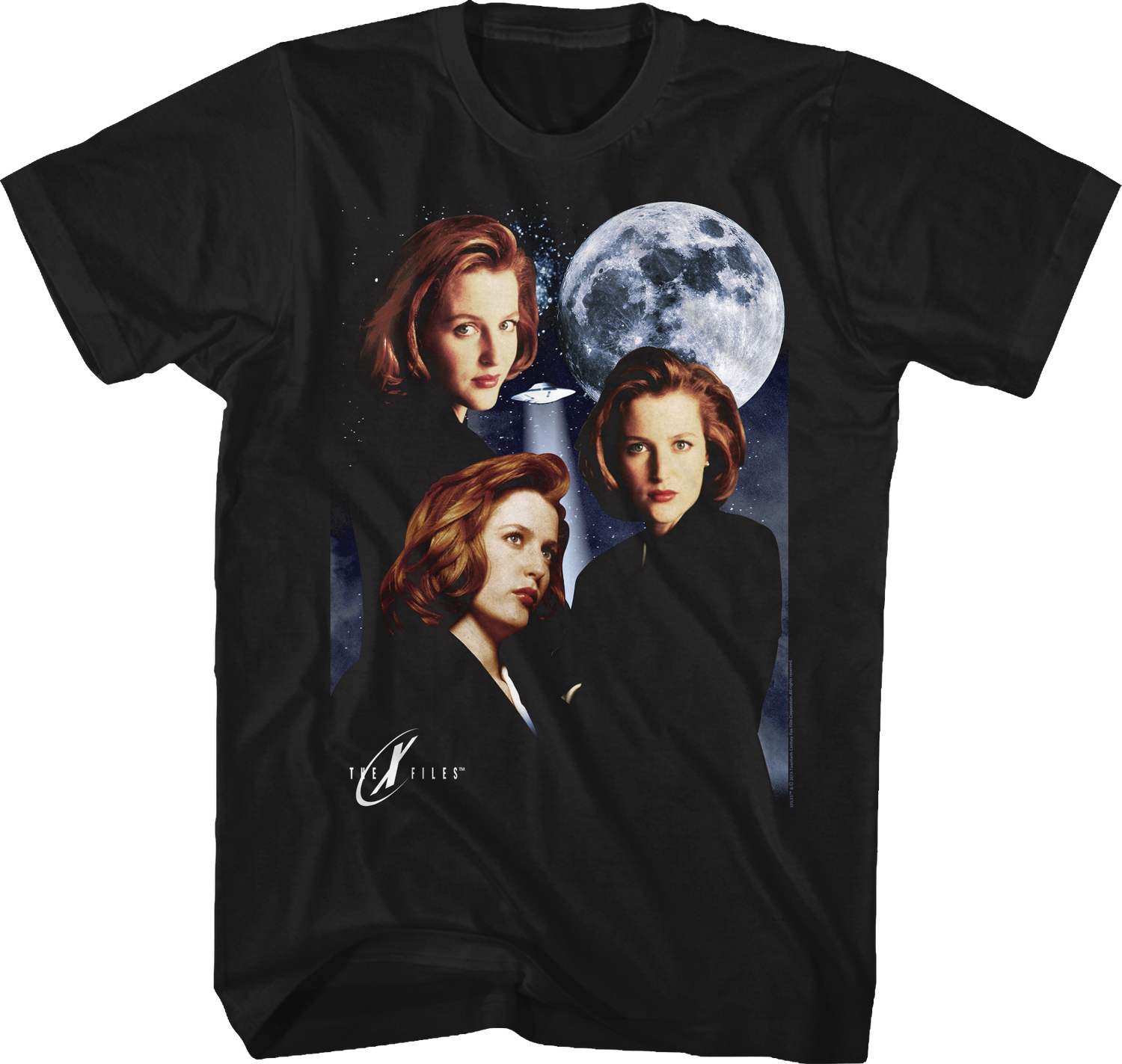 Dana Scully is one of the most popular characters in television history, and everyone will know you are a fan when you wear this Three Scully Moon X-Files T-Shirt!
