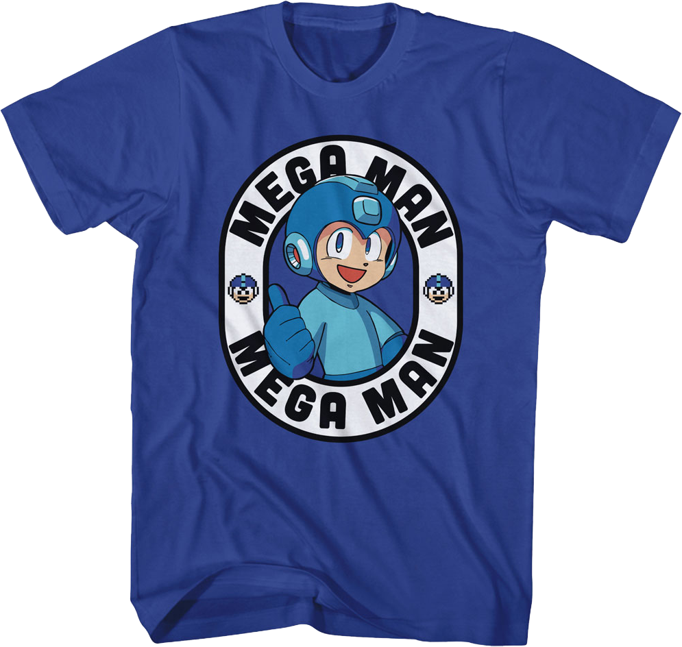 Mega Man is one of the most iconic video game characters of all time, and everyone will know you are a fan when you wear this Thumbs Up Oval Mega Man T-Shirt!