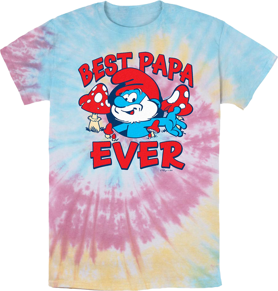 Papa Smurf is the wise, calm, caring, and fatherly figure seen on the classic animated series The Smurfs. Papa Smurf mediates disputes and protects the village from danger. He is highly knowledgeable in alchemy and magic. He frequently brews potions and spells to help solve problems. Everyone will instantly know you are a fan when you wear this Tie Dye Best Papa Ever Smurfs T-Shirt!