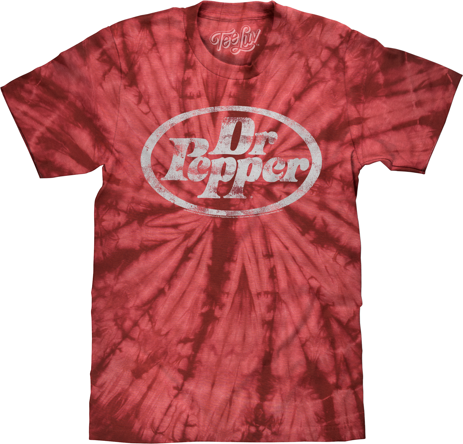 This Dr. Pepper t-shirt shows the popular soft drink's logo on a tie dye design.