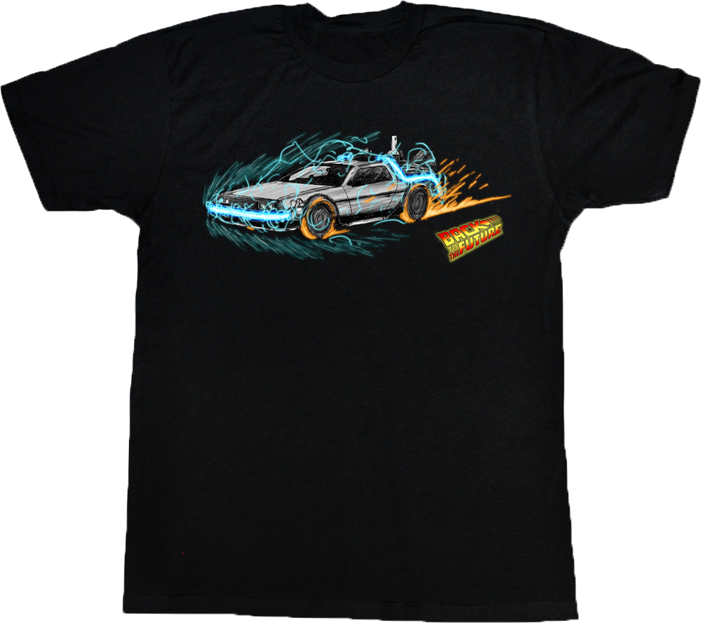 Doc Brown's time machine first appeared in the 1985 blockbuster Back To The Future. The DeLorean DMC-12 sports car is now one of the most popular cars in cinematic history. This is the perfect t-shirt for any fan of Back To The Future.