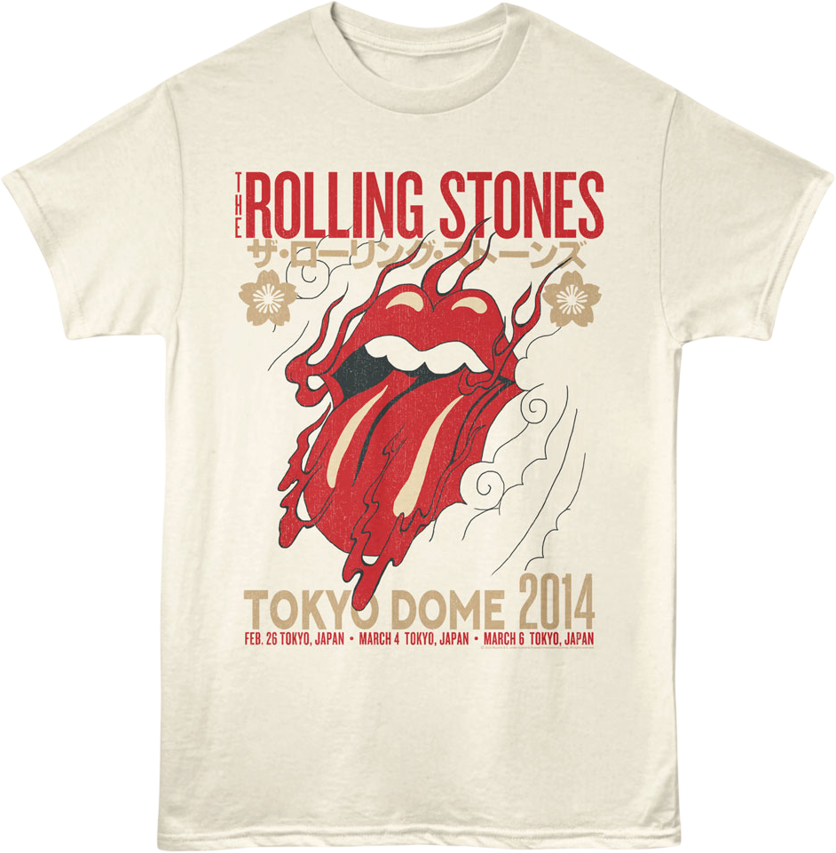 This Rolling Stones t-shirt features a tongue logo that was used to promote the band's three performances at the Tokyo Dome in 2014.