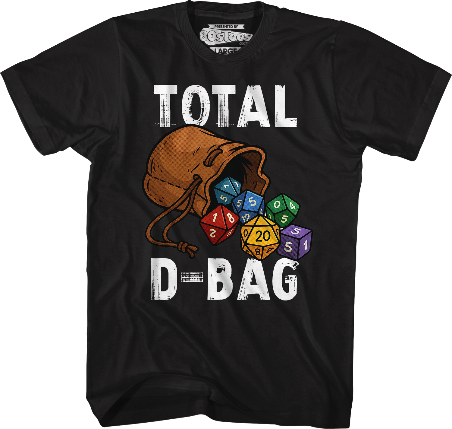 Everyone will know you are a fan of the world's most popular role-playing game when you wear this 80sTees.com exclusive Total D-Bag T-Shirt!