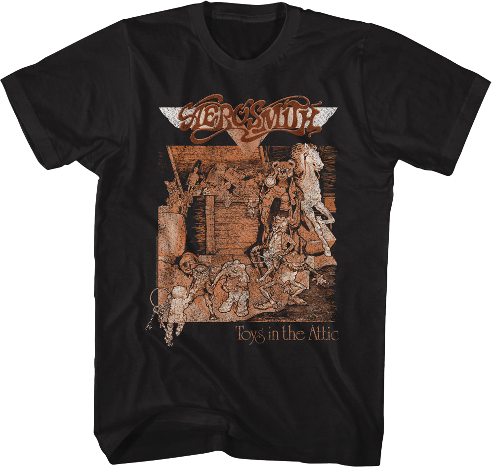 This Aerosmith t-shirt features the cover artwork for the band's third album Toys In The Attic.
