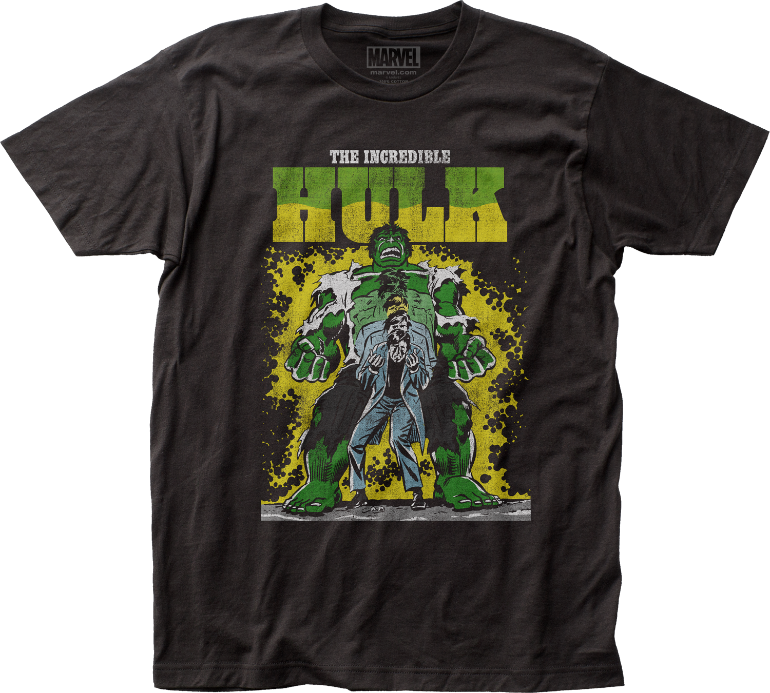 This Incredible Hulk t-shirt shows Bruce Banner transforming into his angry, green alter ego.