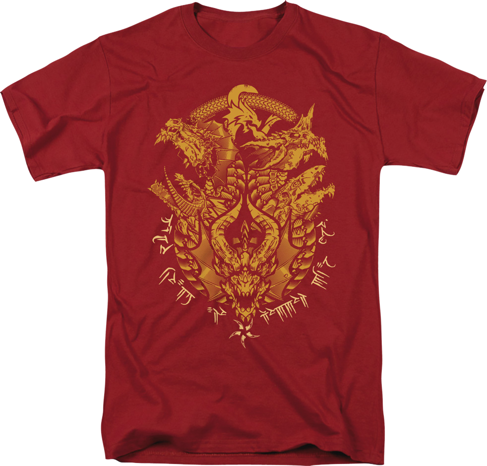 This Dungeons & Dragons t-shirt shows Tiamat's five dragon heads on the cover artwork for the adventure saga Tyranny of Dragons.