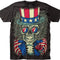 This Uncle Sam Grateful Dead T-Shirt features the iconic skeleton dressed as a patriot. The band's lightning logo is shown reflecting in the lenses of his glasses. The Dead entertained audiences and influenced the tone of the music world for thirty years with songs like "Casey Jones", "Truckin'", and "Sugar Magnolia".