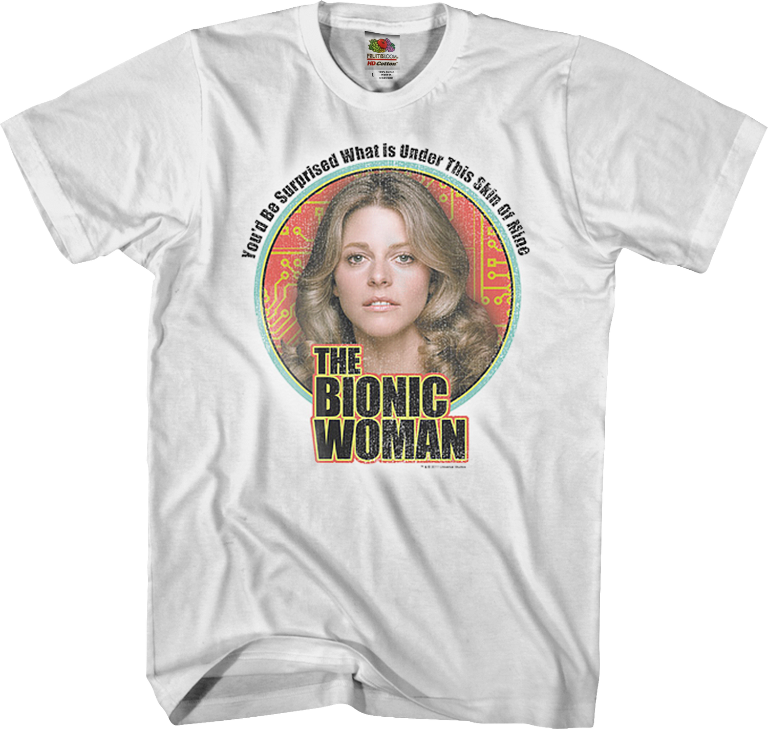 For any fan of the former tennis pro who gained superhuman abilities through bionic implants, this Under This Skin Bionic Woman t-shirt is a must have!