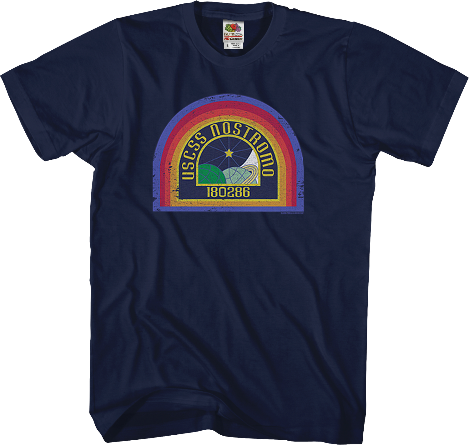 This Alien shirt shows the logo for the spacecraft named Nostromo. The spacecraft was registered to the Weyland-Yutani Corporation in the year 2122. Weyland-Yutani sent Nostromo on a mission to detect mysterious signals. Unbeknownst to the crew of the spacecraft, they were to return with a Xenomorph specimen...all other priorities rescinded. One by one, the crew was eliminated by the fierce alien life form. For any fan of the sci-fi thriller Alien, this Nostromo shirt is a must have.