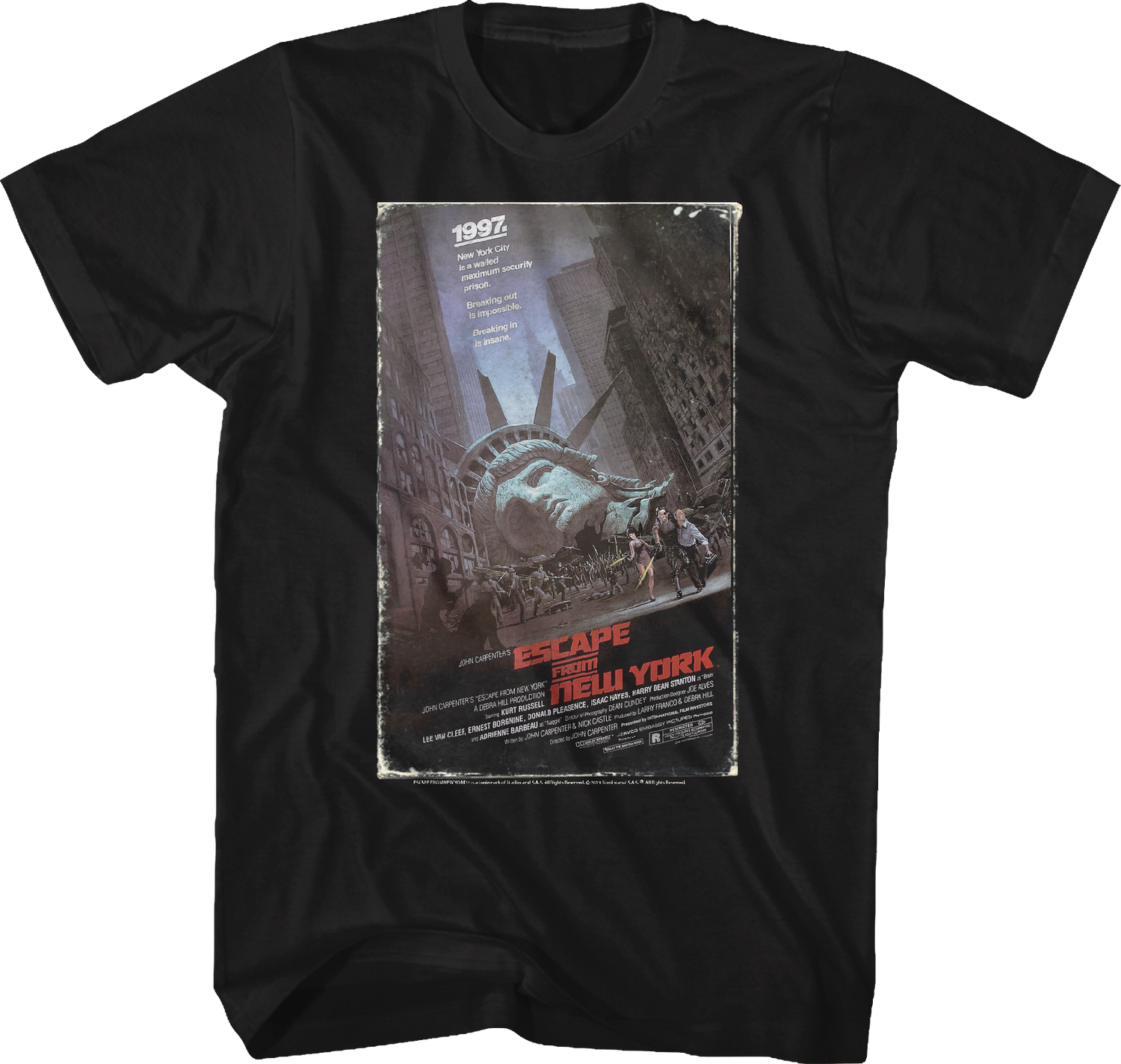 This Escape From New York t-shirt features the cover artwork that appeared on VHS copies of the 1981 classic.