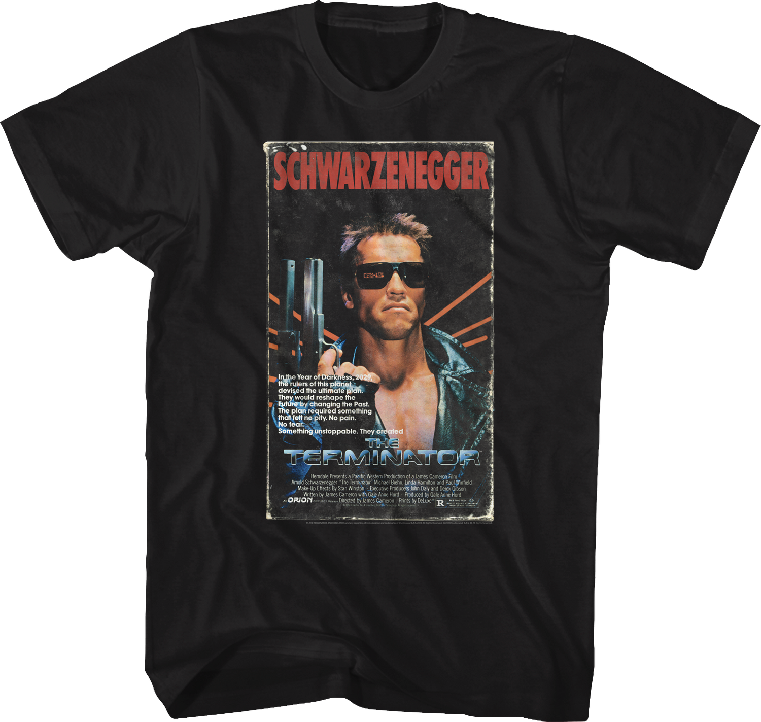 Everyone will immediately know that you are a fan of the Arnold Schwarzenegger classic when you wear this VHS Box Cover Artwork Terminator t-shirt!