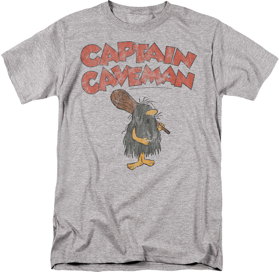 After being thawed out by the Teen Angels, Captain Caveman carried his trusty club and helped to solve supernatural-related mysteries. He is known as the world's first superhero, and his battle cry is "Captain CAAAAAVEMAAAAAAANNNN!" Everyone will know you are a fan of the classic animated character when you wear this Vintage Captain Caveman T-Shirt!