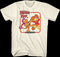 This Fraggle Rock t-shirt features the iconic characters Gobo and Red in a retro colored frame. The shirt includes lyrics from the Fraggle Rock theme song, "Dance your cares away".