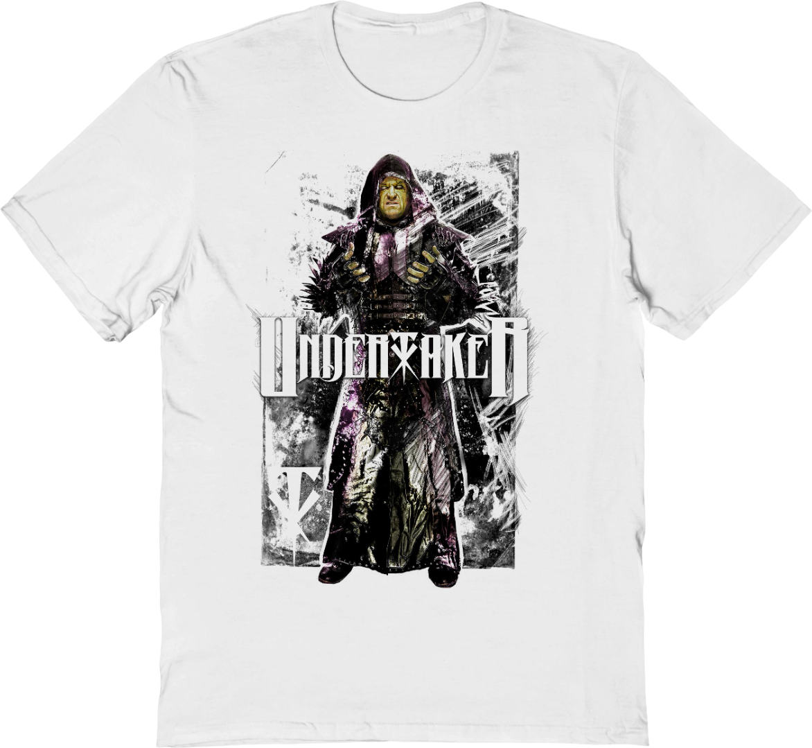 The Undertaker is a sadistic mortician who promised his opponents that they would rest in peace, then finished them off with his patented tombstone piledriver. The Undertaker has a number of specialty matches associated with him, including the Casket match, the Buried Alive match, the Hell in a Cell and the Last Ride match. Everyone will know you are a fan of the WWE Hall Of Fame inductee when you wear this Vintage Dead Man Undertaker T-Shirt!