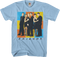 This Friends t-shirt shows Chandler Bing, Rachel Green, Phoebe Buffay, Ross Gellar, Monica Gellar and Joey Tribbiani posing in front of a colorful background.
